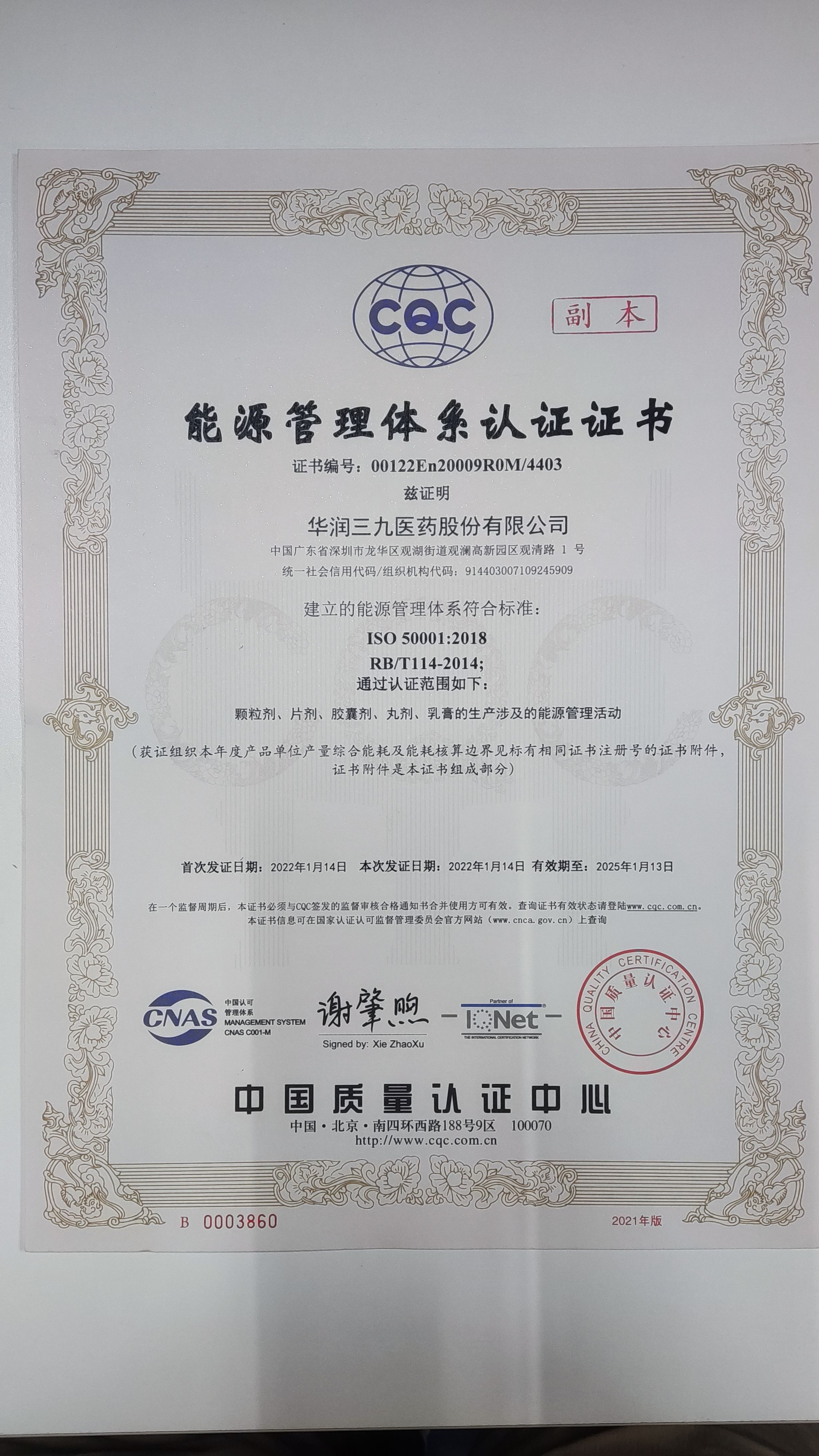 華潤(rùn)三九觀瀾基地通過ISO50001能源管理體系認(rèn)證