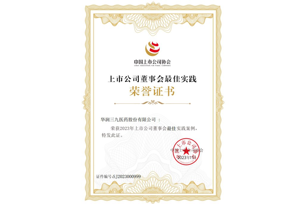 華潤(rùn)三九及旗下昆藥集團(tuán)獲2023上市公司董事會(huì)兩項(xiàng)榮譽(yù)