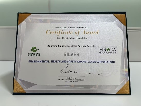 昆中藥榮獲2024年香港綠色企業(yè)大獎(jiǎng)—“超卓環(huán)保安全健康獎(jiǎng)”銀獎(jiǎng)