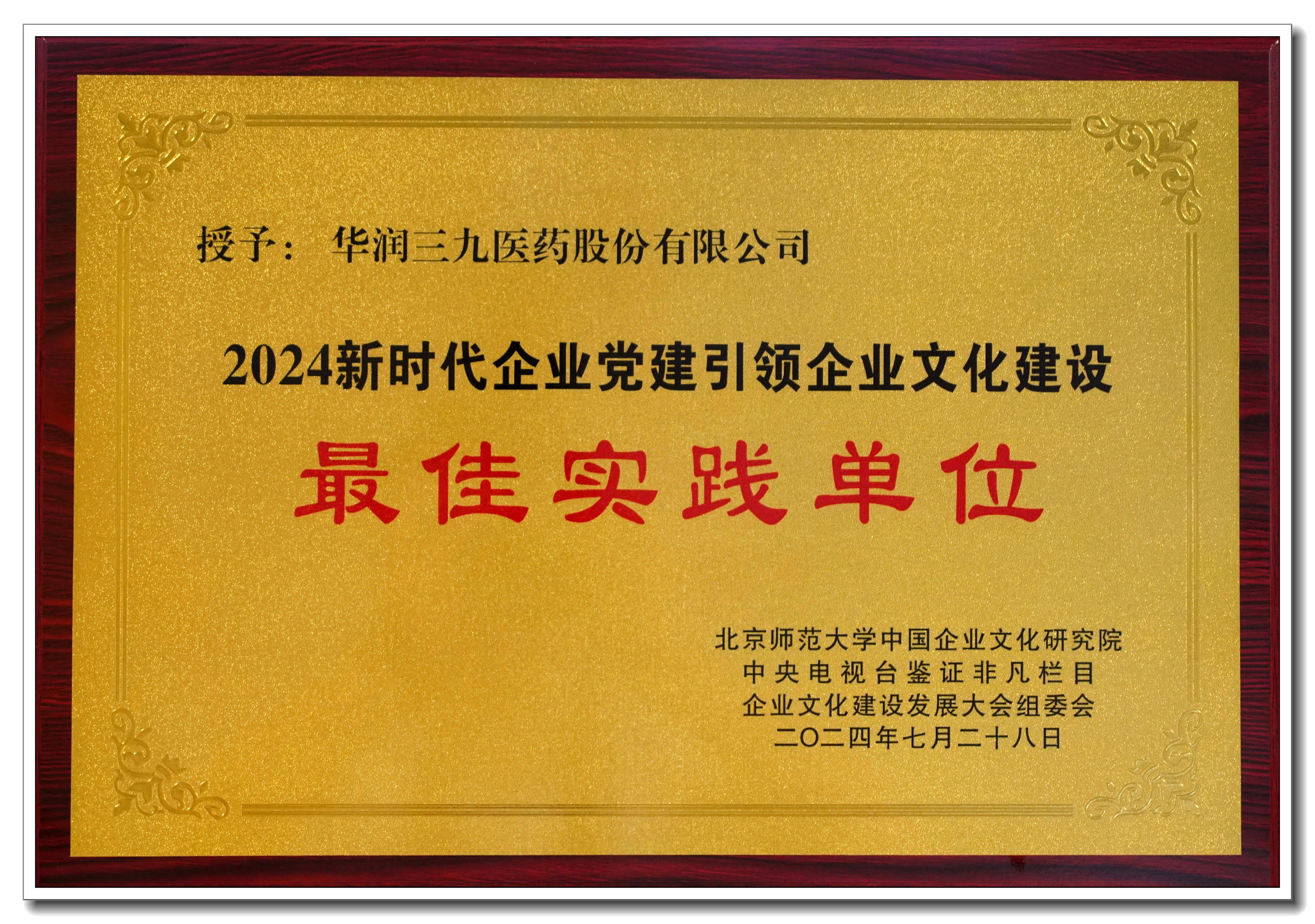 華潤三九獲評(píng)“2024新時(shí)代企業(yè)黨建引領(lǐng)企業(yè)文化建設(shè)最佳實(shí)踐單位”