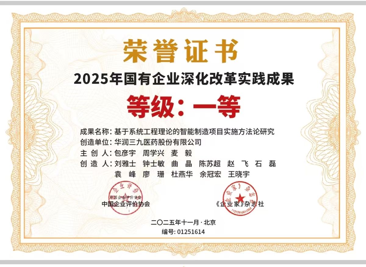 近日,2025企業(yè)改革與發(fā)展創(chuàng)新實踐交流會暨優(yōu)秀企業(yè)管理實踐成果(案例)發(fā)布會在北京召開。會上,華潤三九兩項實踐成果(案例)分別榮獲一等獎。其中,“基于系統(tǒng)工程理論的智能制造項目實施方法論研究”課題榮獲“國有企業(yè)深化改革實踐成果一等獎”,“基于戰(zhàn)略和業(yè)務(wù)需求的公輔AI智慧能源管理平臺”項目榮獲“數(shù)字化智能化科技創(chuàng)新典范(案例)一等獎”。
