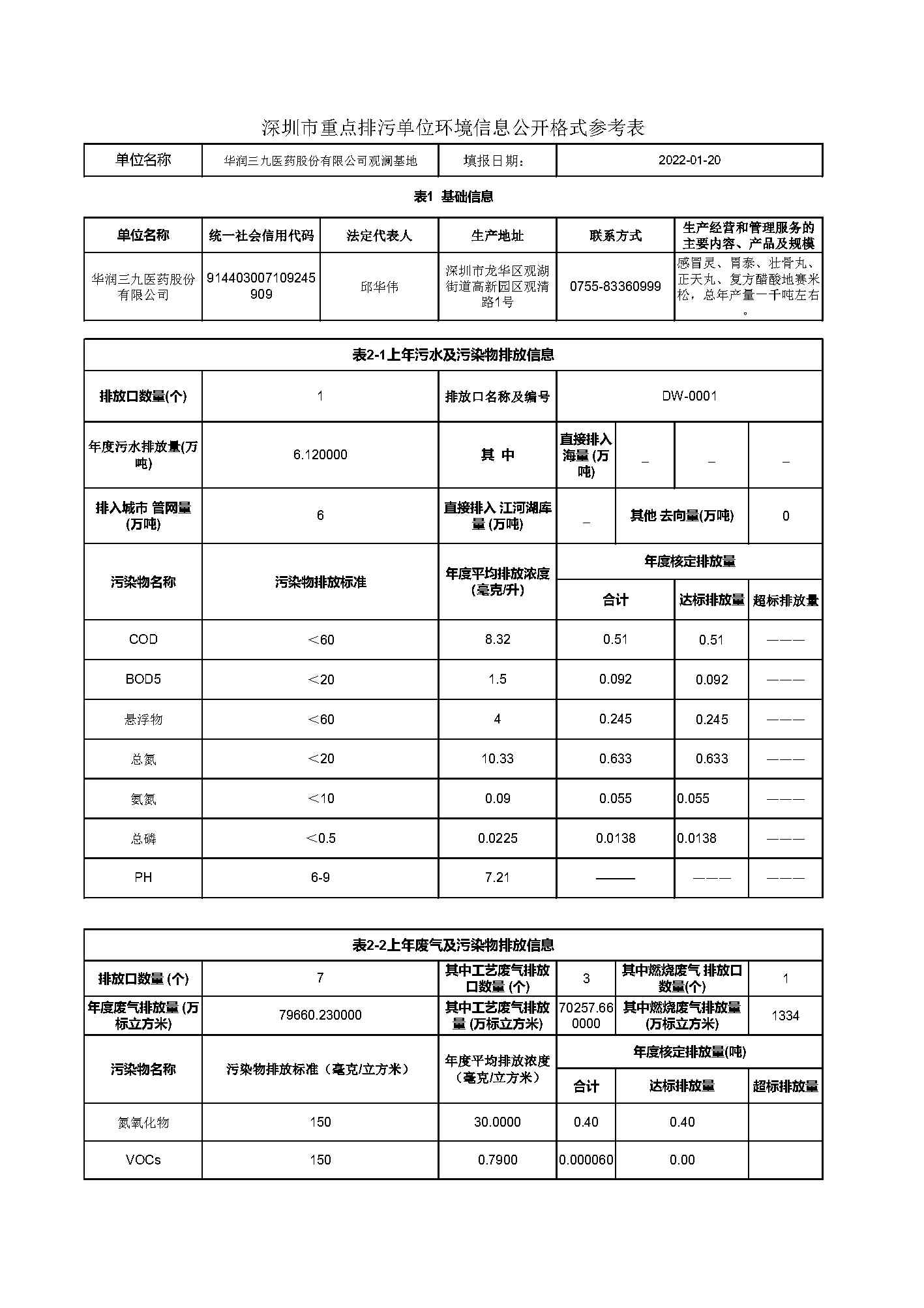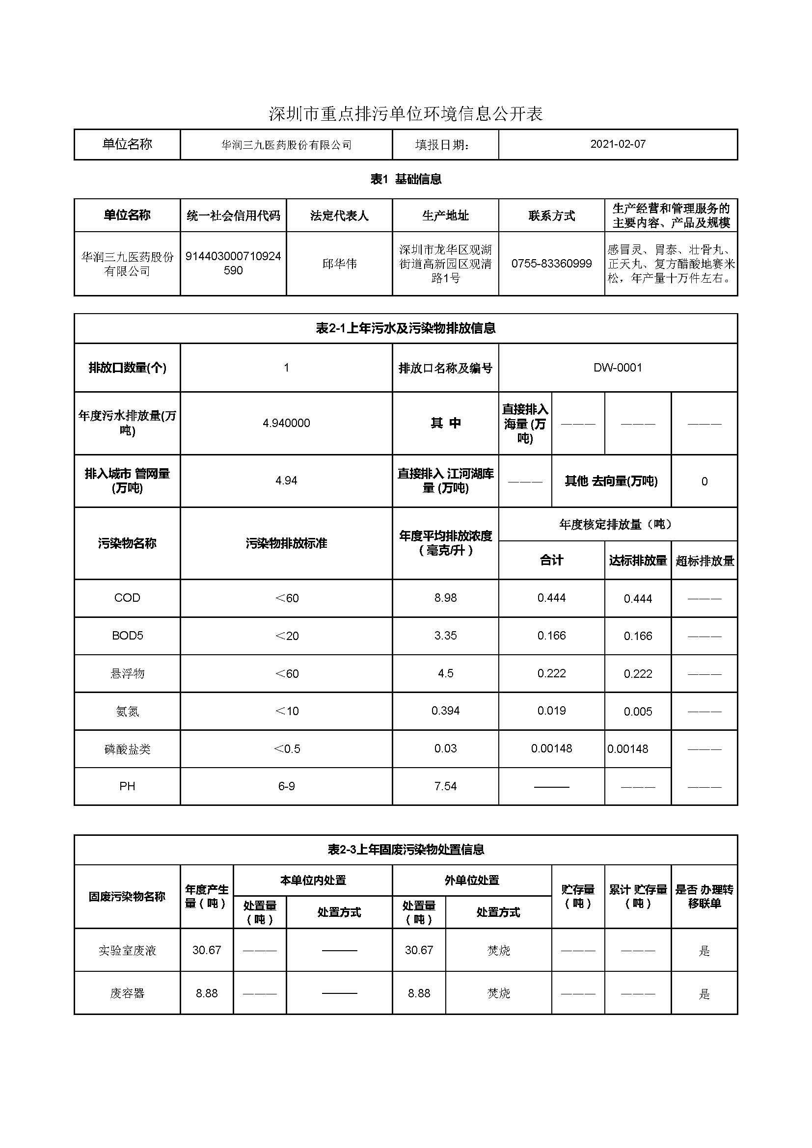 華潤三九2020年環(huán)保信息公開