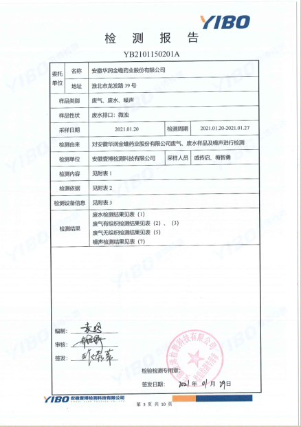 華潤金蟾污染物排放檢測報告(2021年一季度)
