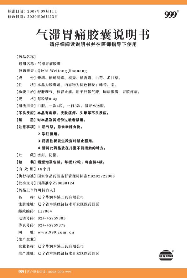 氣滯胃痛膠囊12粒x4板