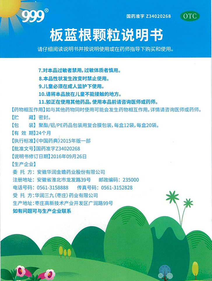 板藍(lán)根顆粒說(shuō)明書(正面)