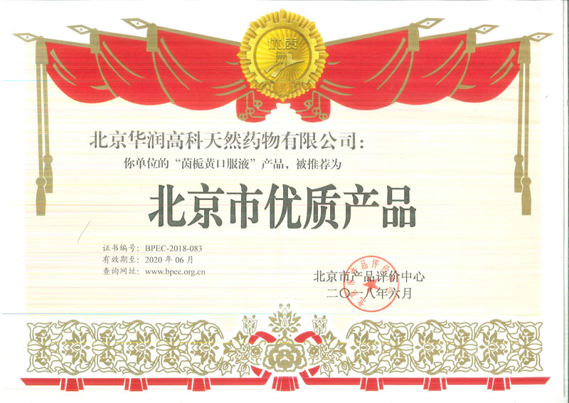 近日,華潤高科茵梔黃口服液、舒血寧注射液、銀杏葉酊等三個藥品被北京市產(chǎn)品評價中心推薦為“北京市優(yōu)質(zhì)產(chǎn)品”。