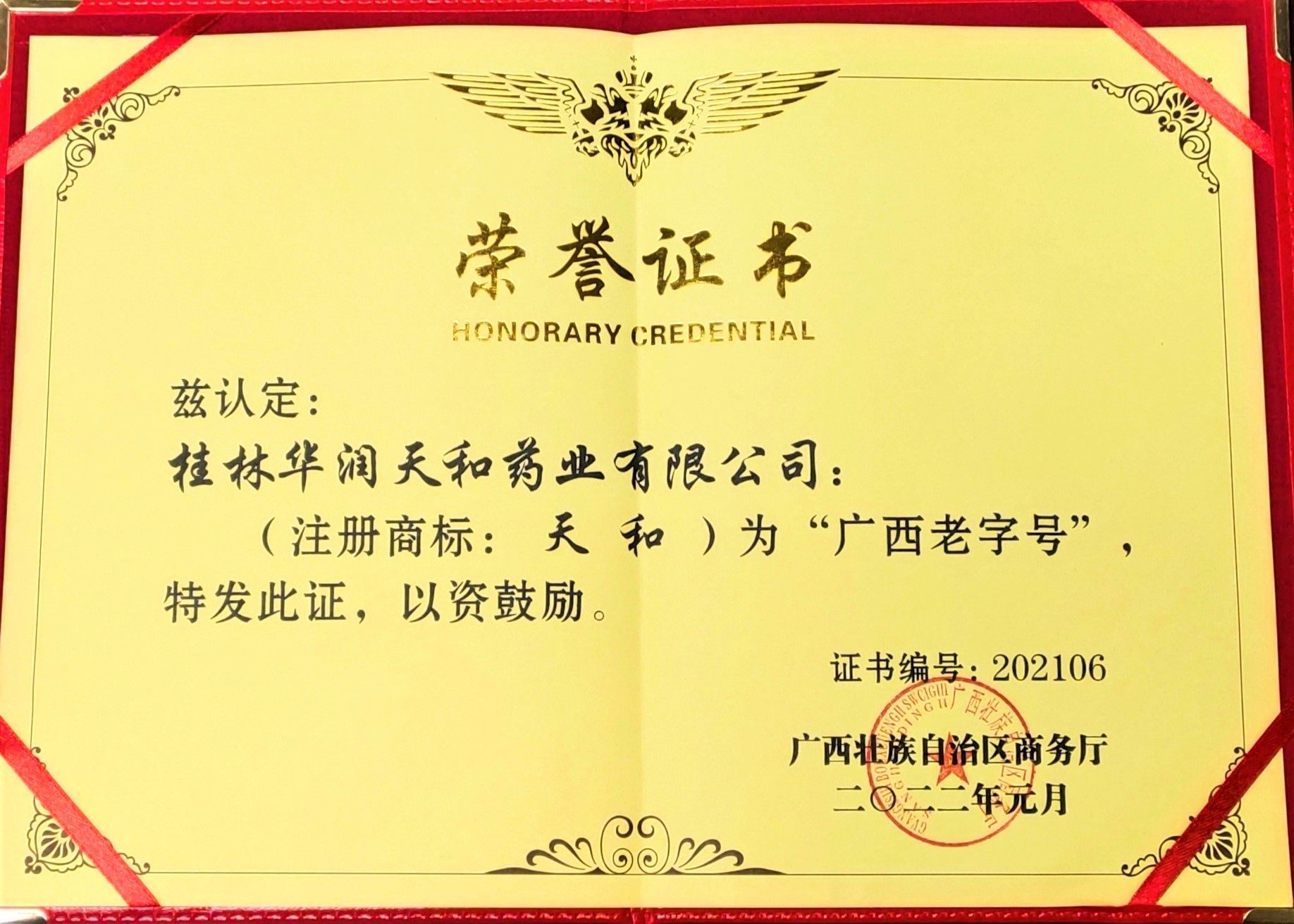 華潤(rùn)天和入選“廣西老字號(hào)”企業(yè)