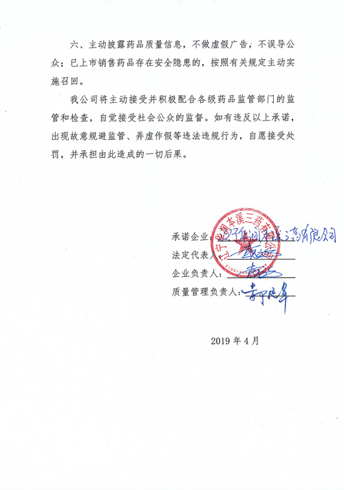 藥品質(zhì)量安全承諾書