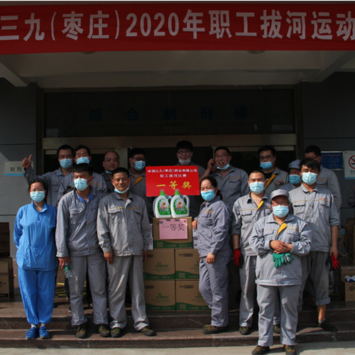 為迎接五一節(jié)的到來,在疫情緩解的前提下,華潤三九(棗莊)于4月30日下午舉辦了2020年職工拔河運動會,此次活動要求參與者佩戴口罩,在積極比賽的同時做好疫情防護工作。