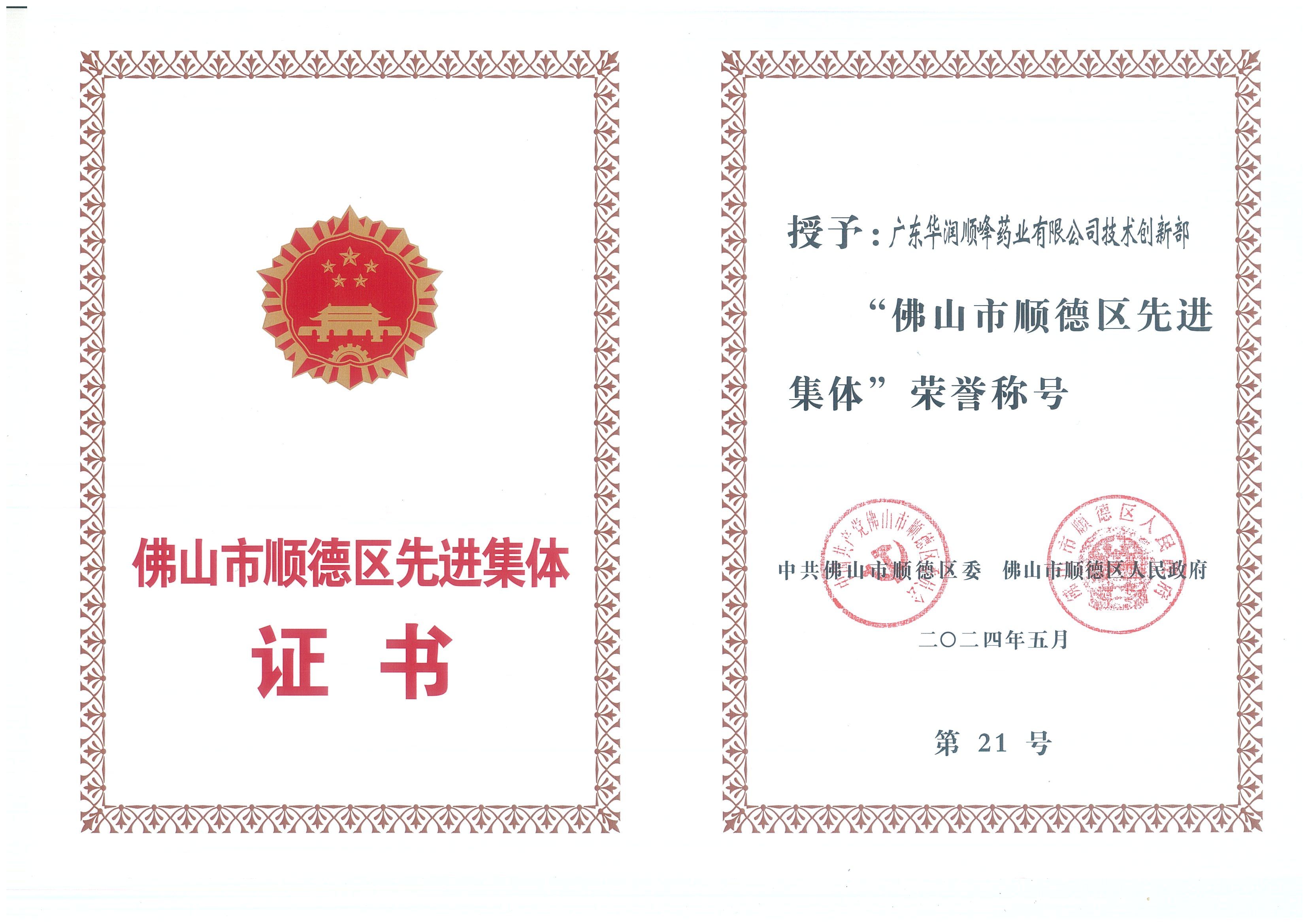 華潤(rùn)順?lè)寮夹g(shù)創(chuàng)新部榮獲佛山市順德區(qū)先進(jìn)集體榮譽(yù)稱號(hào)