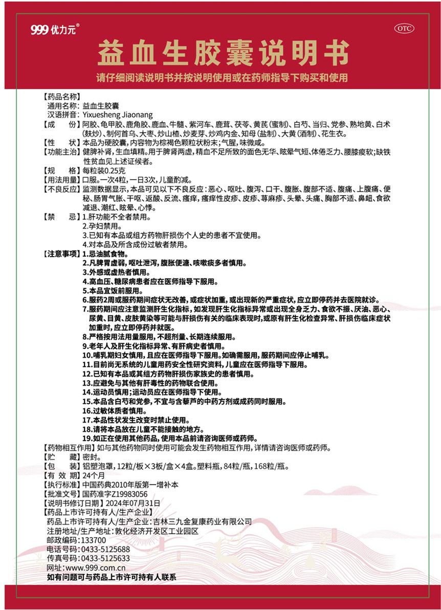 益血生膠囊說(shuō)明書(shū) 請(qǐng)仔細(xì)閱讀說(shuō)明書(shū)并按說(shuō)明使用或在藥師指導(dǎo)下購(gòu)買和使用 【藥品名稱】通用名稱:益血生膠囊 漢語(yǔ)拼音:Yixuesheng Jiaonang