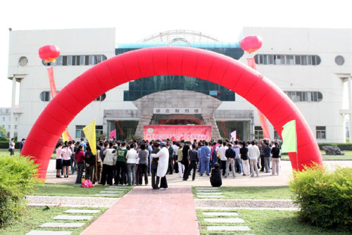 5月4日,天晴氣朗、陽光明媚,神鹿雙鶴環(huán)境優(yōu)美的廠區(qū)內(nèi)花團錦簇、彩旗招展,制劑樓正門兩側(cè),兩個紅色大氫汽球飄蕩在半空,汽球下端兩條寫著“神鹿是我們共同的家園”、“簡單、坦誠、陽光”的紅色條幅隨風飄揚,主題鮮明的大型噴繪活動背景板立于大門正前方,與橫臥于音樂噴泉前方的紅色“彩虹門”交相輝映,一派喜慶祥和的景象。在這個屬于年輕人的節(jié)日里,公司以“團結 激情 和諧 奮進”為主題組織開展了“五一”職工趣味運動會,來自各部門組成的九支代表隊近一百八十人參加了比賽。