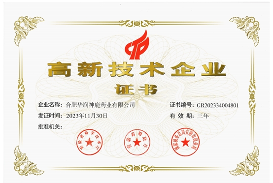2024年1月18日,合肥華潤神鹿藥業(yè)有限公司獲安徽省科技廳、財政廳和稅務(wù)局頒發(fā)的高新技術(shù)企業(yè)證書,標志著華潤神鹿順利通過“高新技術(shù)企業(yè)”重新認定。按照《高新技術(shù)企業(yè)認定管理辦法》(國科發(fā)火[2016]32號)要求,高新技術(shù)企業(yè)認定每三年重新認定一次,2023年是華潤神鹿第六次開展高新技術(shù)企業(yè)認定。自2008年至今,已連續(xù)15年認定為高新技術(shù)企業(yè),標志華潤神鹿科技組織管理水平、科研成果轉(zhuǎn)化能力、自主研發(fā)生產(chǎn)的產(chǎn)品得到國家科技部門的充分認可。下一步,華潤神鹿將進一步加大科技創(chuàng)新投入,加強科技創(chuàng)新人才隊伍建設(shè),加速科技創(chuàng)新成果轉(zhuǎn)化,不斷提升科技創(chuàng)新活力與能力,持續(xù)推動企業(yè)高質(zhì)量發(fā)展。