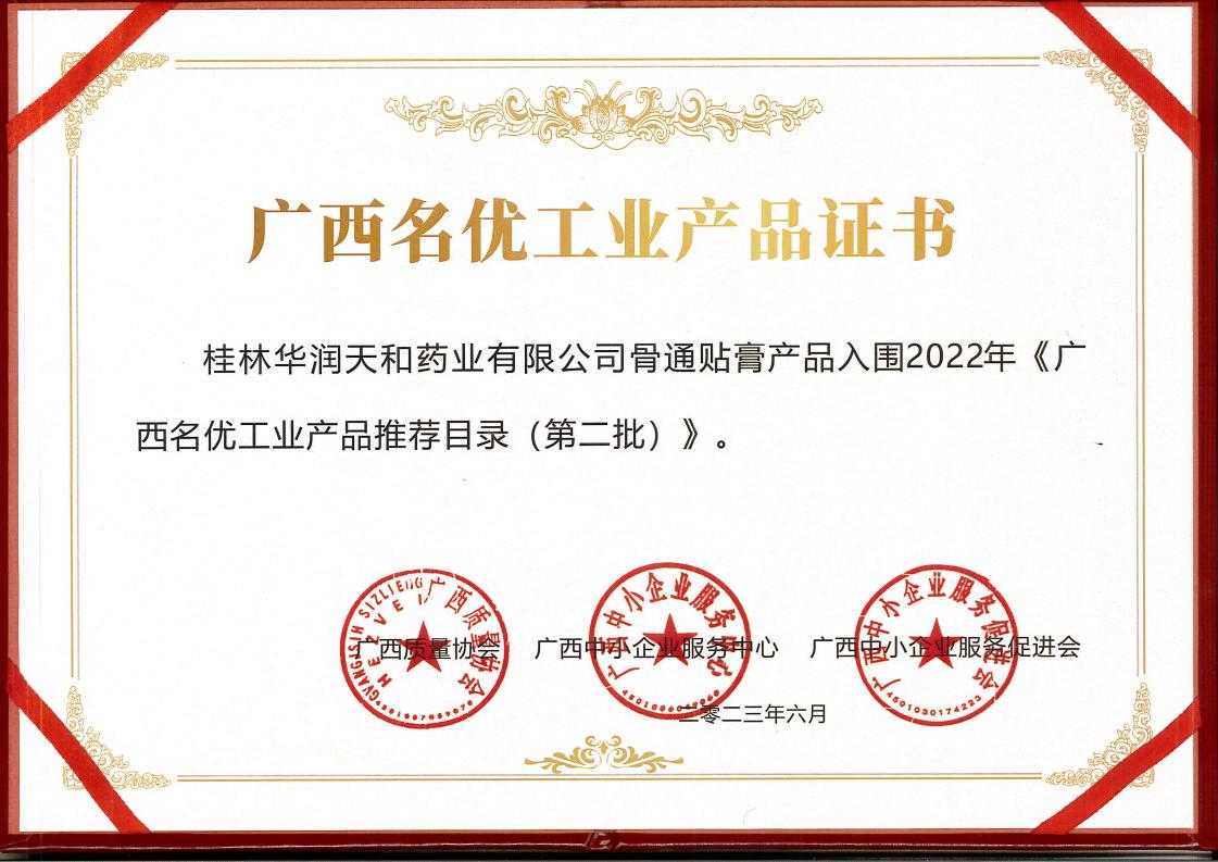 華潤(rùn)天和“骨通貼膏”入選《廣西名優(yōu)工業(yè)產(chǎn)品推薦目錄》